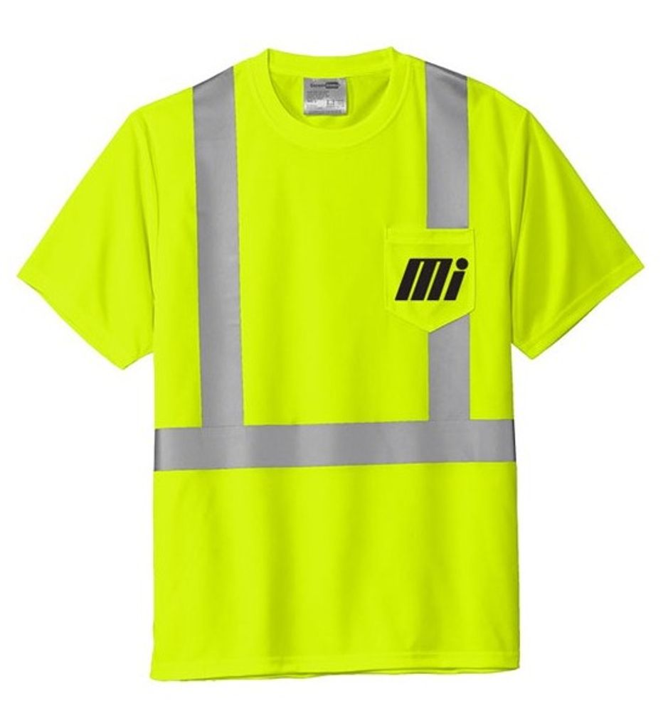 This short sleeve, breathable, moisture-wicking mesh safety tee delivers high visibility and on-the-job comfort. Constructed of 4.1-ounce, 100% polyester birdseye mesh, its durable, reflective 2-inch tape meets ANSI 107 requirements and provides 360-degree visibility on body.